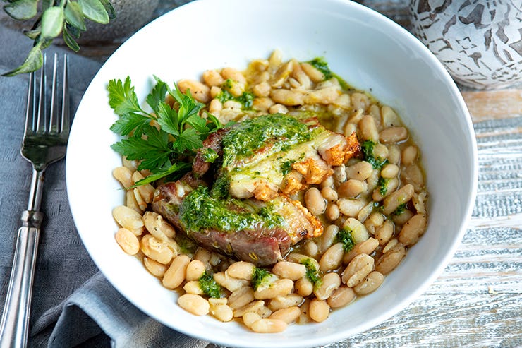 SLOW ROAST PORK BELLY with Cannellini Beans and a Salsa Verde